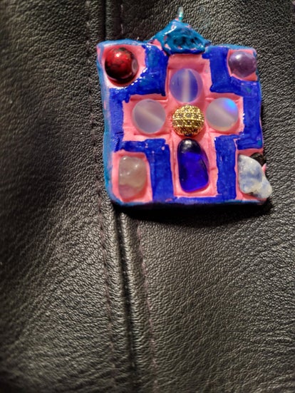 Beautiful square cross with stones and beads embedded in it. Real stone chips and golden cubic zirconia. Crafted from a mold I created.